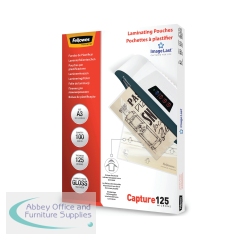 Fellowes ImageLast Laminating Pouch A3 125mi Gloss (Pack of 100) 5307506. Unique ImageLast directional quality mark disappears after lamination. Glossy finish. 250 Micron (2 x 125 Micron). Compatible with all popular brands of laminator.