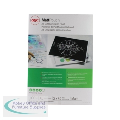GBC Matt Laminating Pouch A3 150 Micron (Pack of100) 41660EA3 laminating pouch. Matt finish. 150 micron. Pack size: 100 pouches.