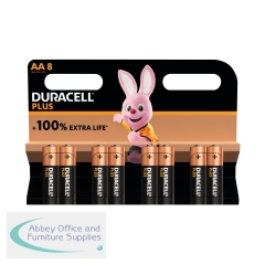 Duracell Plus AA Battery Alkaline 150% Extra Life Power Boost (Pack of 8) 5015223+. Perfect for powering everyday devices. Up to 150% Extra Life with Power Boost Actives. Leakage protection. Unused batteries last up to 10 years in ambient storage.