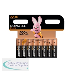 Duracell Plus AA Battery Alkaline 150% Extra Life Power Boost (Pack of 16) 5009375+. Perfect for powering everyday devices. Up to 150% Extra Life with Power Boost Actives. Leakage protection. Unused batteries last up to 10 years in ambient storage.