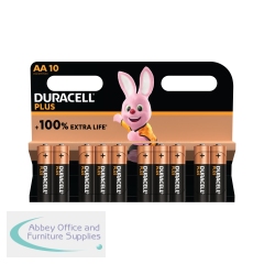 Duracell Plus AA Battery Alkaline 150% Extra Life Power Boost (Pack of 10) 5015842+. Perfect for powering everyday devices. Up to 150% Extra Life with Power Boost Actives. Leakage protection. Unused batteries last up to 10 years in ambient storage.