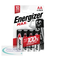Energizer Max AA Battery (Pack of 4 ) E303323700. Long lasting alkaline batteries. With no leaks guaranteed. Will not leak in your device for up to 2 yrs after full discharge. 10 yr shelf life. Dependable energy for your everyday devices.