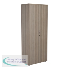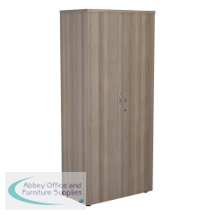 Jemini Wooden Cupboard 800x450x2000mm Grey Oak KF822961. Convenient storage solution for organised office filing. Includes two lockable doors. 1 shelf. Solid MFC back. Black adjustable feet for levelling on uneven floors. Warranty: 5 Yrs.