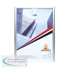 Announce Snap Frame A4 PHT01808. Break-resistant cover with 25mm anodised aluminium frame. Reversible cover is anti-glare matte on one side and glossy on the other. Snaps open and closed for easy use.