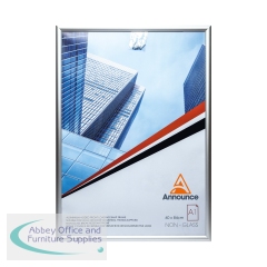 Announce Snap Frame A3 PHT01809. Break-resistant cover with 25mm anodised aluminium frame. Reversible cover is anti-glare matte on one side and glossy on the other. Snaps open and closed for easy use.