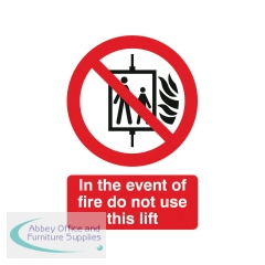 Warns people not to use lift in event of fire. Must be legally displayed for health and safety. Features the new European recognised pictograms. Made from 1.2mm rigid polypropylene. Dimensions: A5 (H210xW148mm).