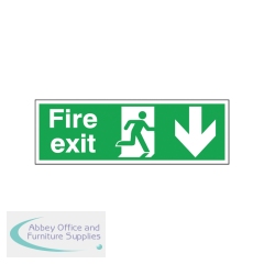 SR71172 - Safety Sign Fire Exit Running Man Arrow Down 150x450mm Self-Adhesive E100A/S