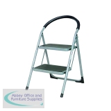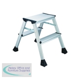SBY10539 - Folding Step Stool 2 Tread High Back White Aluminium 402790