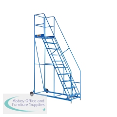 Anti opening straps. Flanged non skid steps. Inbuilt aluminium tool tray. Reinforced non slip rubber feet. Conforms to EN131. 5 year guarantee. Maximum capacity 150kg. Guardrail height 60cm. Platform height: 2.3m. 10 treads. Non returnable.