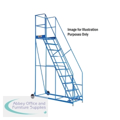 VFM 5-Tread Step. Light Blue. Fully welded tubular steel construction. Ribbed rubber treads. Castors with non marking tyres. Non returnable.