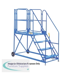 VFM 4-Tread Step. Light Blue. Fully welded tubular steel construction. Ribbed rubber treads. Castors with non marking tyres. Non returnable.
