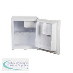 Coolzone table top 47L fridge with shelf, 2 balcony door shelves and 4L ice box. 1.8 cu ft /50 litre capacity. Dimensions: W440 x D470 x H510mm. Finish: White. (Specification may vary). Energy rating: F.