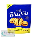 McVities Blissfuls Milk Chocolate and Caramel Biscuits 172g 44825. Crunchy biscuits with smooth creamy chocolate and caramel filling. Suitable for vegetarians. May contain nuts. 172g.