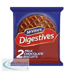 McVitie\'s Milk Chocolate Digestives 33g (Pack of 24) 32404 Individually wrapped biscuit snack packs. Each contains two chocolate digestives. Locks in taste and freshness. Ideal for conference rooms or catering trolleys. 33g each packet. Pack of 24.
