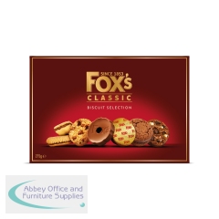 Foxs Classic Biscuit Selection 275g FOXS33. Assortment of cream-filled, chocolate covered and chocolate chunk biscuits. Suitable for Vegetarians. Contains Fox\'s Crunch Creams, Chocolatey, Chunky Cookies and other favourites.