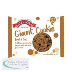 Patersons Giant Cookie Fruity Oat 60g (Pack of 18) F5317. Large cookie with oats and raisins. Traditional cookies in Fruit and Oat flavour offer sweet indulgence with a healthy twistFlavour: Fruit and Oat. Free from palm oil. 60g per pack.