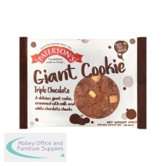Patersons Giant Cookie Triple Chocolate 60g (Pack of 18) F5318. Large cookie milk and white chocolate chunks. Delicious sweet treat. Flavour: Triple chocolate. Free from palm oil. 60g per pack.