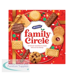 McVities Family Circle Sweet Biscuit Assortment 400g 44772. Contains 10 biscuit varieties. assortment of creams, chocolate, jam and other sweet biscuits. Suitable for vegetarians.