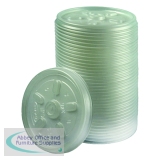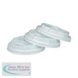 Lids for paper cups. Strong plastic construction. Designed with sipping aperture. For 25cl cups. Supplied stacked for easy storage. Supplied in a pack of 100. White.