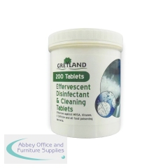 Effervescent Chlorine Disinfectant and Cleaning Tablets White (Pack of 200) 1016030. NaDDC based disinfectant tablet. Effective against food poisoning bacteria. Dissolve in cold water. Conforms to BSEN1276 with 1 tablet per 5 litres.
