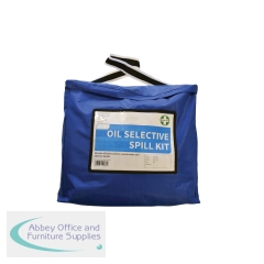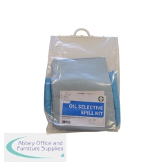 Oil Selective Spill Kit 50 Litre 1011041. Quick response kit for spills. Designed specifically for use with oil spills. Contains 25 absorbent pads, 4 absorbent socks, 1 absorbent cushion, 1 pair of gloves and goggles, 1 disposal bag and tie, dammit slab.