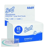 Scott Performance Hand Towels Interfolded White 300 Sheets Pack of 15 6659. Dispense 1 at a time. Soft and absorbent. Ideal for kitchens and washrooms. 210x215mm sheet size. Pack of 4500.