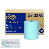 Tork Matic Hand Towel H1 Blue 150m (Pack of 6) 290068. 2-ply, soft, tear resistant paper towel roll. For use with Tork H1 dispensing systems. Ideal for washrooms with frequent use. Colour: Blue with grey embossing.