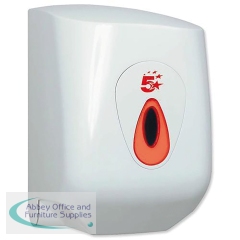 5 Star Centrefeed Dispenser Large 230x235x350mm Plastic Large jumbo centrefeed dispenser designed for areas that require fast access to paper towels. Tear-off mechanism minimises paper waste. Lockable unit, to minimise tampering and pilfering.