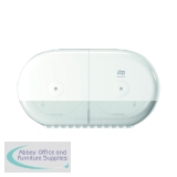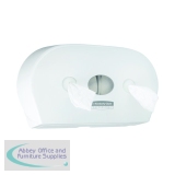 Aquarius Mini Twin Centrefeed Toilet Tissue Dispenser White 7186. Controlled dispensing helps to reduce the usage of toilet tissue. One-wipe-clean dispenser with no dirt traps. Durable construction. Colour: White.