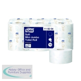 Tork T2 System Mini Jumbo Roll 2-Ply 850 Sheets (Pack of 12) 110254. 2-Ply jumbo toilet tissue. For use with Tork T2 dispensing systems. Soft and bright bulk toilet paper. 850 sheets per roll.