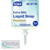 Tork Extra Mild Liquid Soap Refill S1 Non Perfumed 1 Litre (Pack of 6) 420701. Extra mild liquid soap for use with Tork S1 dispensers. Premium soap for a deeper clean. Reduced the risk of cross-contamination in sealed refills.