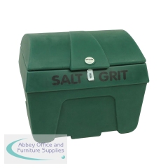 Slingsby Heavy Duty Salt/Grit Bin without Hopper Feed with Locking Lid Green 200L 317059. Robust non-corrosive. Moulded from medium polyethylene. Hopper option dispenses salt from the bottom of the bin. 200L holds 8x25kg bags of salt. HxWxL:725x505x850mm.