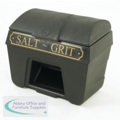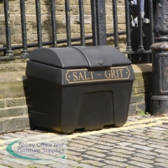 Victoriana Salt and Grit Bin without Hopper Feed Black/Gold 400L 317075. Stylish, add elegance to any environment. Robust non-corrosive bins, moulded from medium duty polyethylene. Fork lift truck grooves enable easy handling. (HxWxL): 900x650x1050mm.