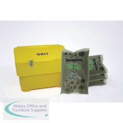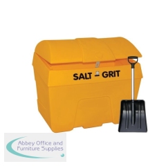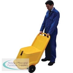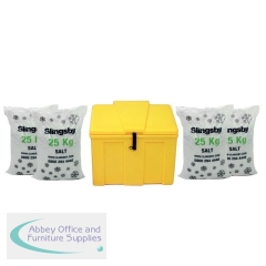 Mobile Salt/Grit Bin Kit Yellow 75L 389550. Bin + 3 bags of white de-icing salt. Robust rubber wheels. Ergonomic handle. Lid can be secured in vertical position for loading/dispensing. 100% recyclable chemically resistant Polyethylene. 1070x590x435mm.