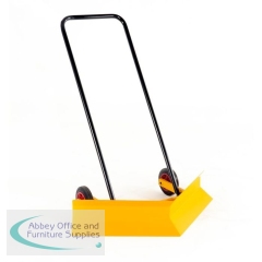 V-Blade Snow Pusher Plough Yellow/Black 389090. Operate from an upright walking position. Angled plough allows snow to easily slide off either side. Long lasting epoxy coated finish. 160mm solid rubber tyred wheels. Handle H:1110mm. Blade HxW:165x900mm.