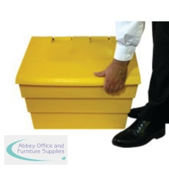Slingsby Heavy Duty Salt and Grit Bin without Hopper Feed with Hasp Yellow 400L 389100. Robust non-corrosive. Moulded from medium polyethylene. Fork lift truck grooves enable easy handling. 400 Litre holds 16x25kg bags of salt. (HxWxL): 900x650x1050mm.
