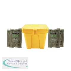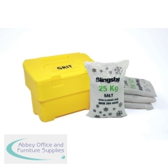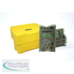 Winter Snow and Ice Clearance Starter Kits Yellow 394472. Handy essentials to ensure you are prepared for icy conditions. Kit consists of a 200L Salt/Grit Bin, 8x25kg bags of salt. 1xlarge snow shovel, 1xhi-visibility vest and 1 pair of winter gloves.