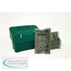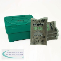 Salt and Grit Bin Supplied with Salt Green 115L 395097. Compact bin with hinged lid to protect salt. Nest away for storage or transportation out of season. Capacity: 115kg. Includes 4x25kg salt. Dimensions: 605 x800 x474mm.