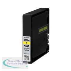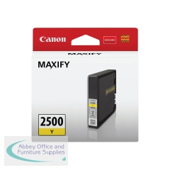 Canon PGI-2500XL Inkjet Cartridge High Yield Yellow 9267B001. Colour: Yellow. Print yield: 1,520 pages. Compatible with Canon MAXIFY printers. High yield. Capacity: 19.3ml. Replacement yellow ink cartridge for Canon MAXIFY printers.