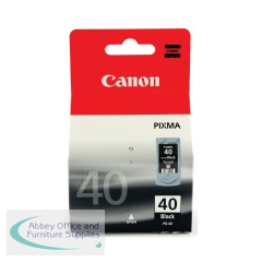Canon PG-40BK Inkjet Cartridge Black 0615B001. Colour:Black. Compatible with Canon PIXMA printers. Quality pigment-based ChromaLife100 ink for long-lasting prints.