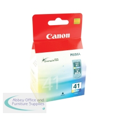Canon CL-41 Inkjet Cartridge Tri-Colour Cyan/Magenta/Yellow 0617B001. Colour:Tri-Colour Cyan/Magenta/Yellow. Compatible with Canon PIXMA printers. Standard yield. Capacity:12ml. Quality pigment-based ChromaLife100 ink for long-lasting prints.