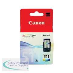 Canon CL-511 Inkjet Cartridge Tri-Colour Cyan/Magenta/Yellow 2972B001. Colour: Tri-colour (Cyan/Magenta/Yellow). Page yield: up to 244 pages. Compatible with Canon PIXMA printers. Standard yield. Capacity: 9ml. ChromaLife100+ system.