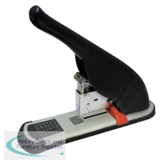 Rapesco ECO HD-100 Heavy Duty Stapler Black 1276. Staples up to 100 sheets of 80gsm paper. Soft rubber handle grip and non-slip rubber feet for added comfort and stability. Easy press button front loading.