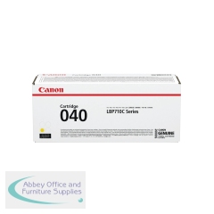 Canon 040Y Toner Cartridge Yellow 0454C001. Colour: Yellow. Page Yield: up to 5,400. Compatible with Canon i-SENSYS LBP712Cx and i-SENSYS LBP710Cx. Laserjet Toner Cartridge. Standard Yield. Consistent high quality print after print.