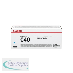 Canon 040C Toner Cartridge Cyan 0458C001. Colour: Cyan. Page Yield: up to 5,400. Compatible with Canon i-SENSYS LBP710Cx and i-SENSYS LBP712Cx Laserjet Toner Cartridge. Standard Yield. Consistent high quality print after print.