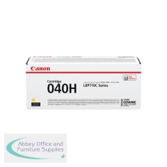 Canon 040H Toner Cartridge High Yield Yellow 0455C001. Colour: Yellow. Page Yield: up to 10,000. Compatible with Canon i-SENSYS LBP712Cx and i-SENSYS LBP710Cx. Laserjet Toner Cartridge. High Yield. Consistent high quality print after print.