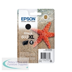 Epson Starfish 603XL Ink Cartridge Black C13T03A14010. The cartridge contains 8.9ml of ink with a high print yield of up to 500 pages. This pack contains 1 black ink cartridge. For compatible Epson Expression Home and WorkForce printers.