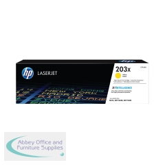 HP 203X Original LaserJet Toner Cartridge High Yield Yellow CF542X. Colour: Yellow. Page yield: Up to 2,500. Compatible with HP Color LaserJet Pro M254/MFP M280/MFP M281. Laser toner. High yield.