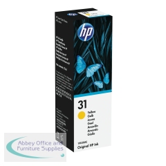 HP 31 70ml Yellow Ink Bottle 1VU28AE. Compatible with HP Smart Tank Wireless 450, HP Smart Tank Wireless 455, and HP Smart Tank Wireless 457. Pack contains one 70ml Yellow ink bottle.