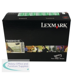 Lexmark T650H31Ehigh yield corporate Cartridge Black for use on T65X printers. Approximate page yield 25000.